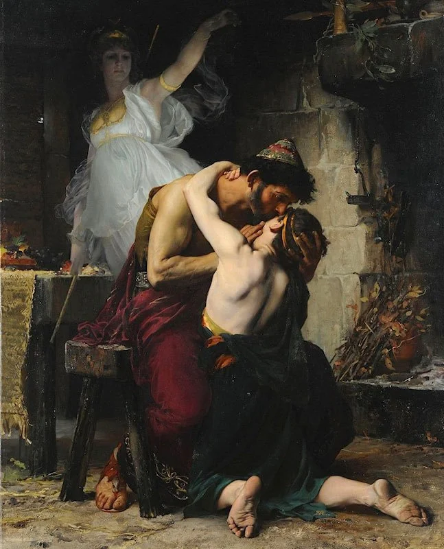 Art: Reunion of Odysseus and Telemachus, by Henri Lucien Doucet, 1880.